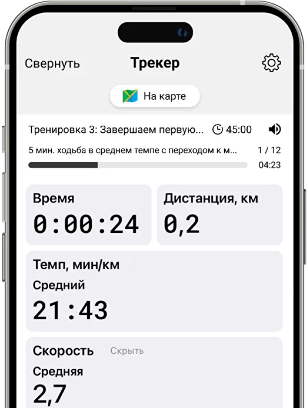 Курс рассчитан на людей, никогда не занимавшихся бегом. Мы разложили все тонкости бега по полочкам и ваша подготовка будет идти постепенно. Через 10 недель вы легко и с удовольствием сможете преодолеть дистанцию в 5 километров.